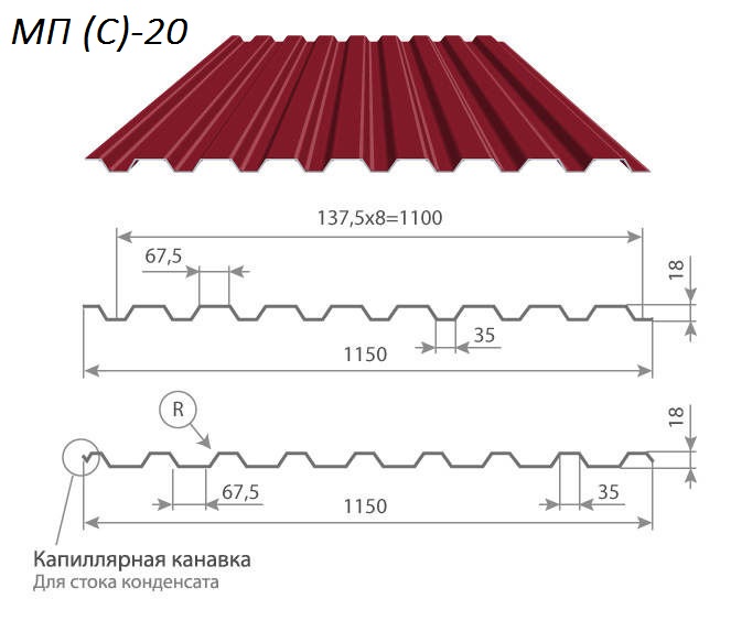 | МП(С)-20 | 1100 мм | 1150 мм | от 0,5 до 8,0м | 0,4 мм | договорная | |